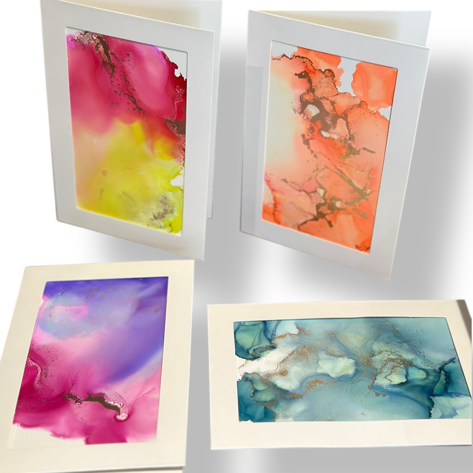 • Gestaltung von 4 einzigartigen Alcohol Ink Kunstkarten