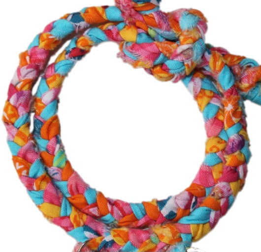 Die bunten Armbänder werden von Hand aus ausrangierten Textilien und Stoffresten geflochten. Jedes ist ein Unikat, made by Sylt-Boheme, einem kleinen Hamburger Unternehmen, das sich auf kreative Art dem Thema Nachhaltigkeit widmet.