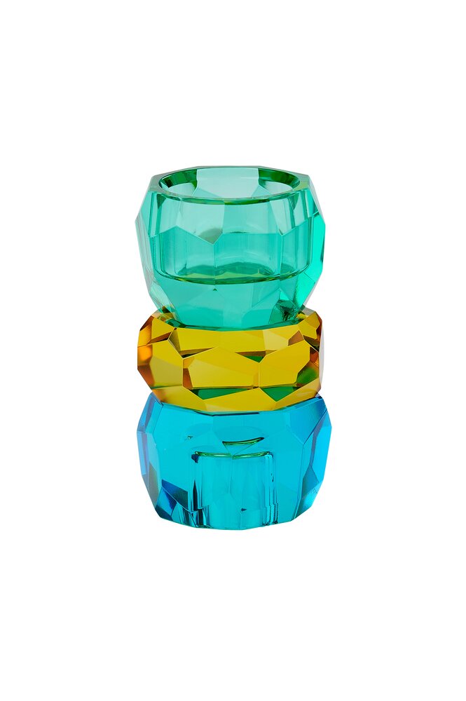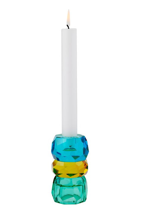 Der hochwertige Kerzenhalter Palisades, geschliffen aus Kristallglas strahlt in einem bunten Color-Mix.